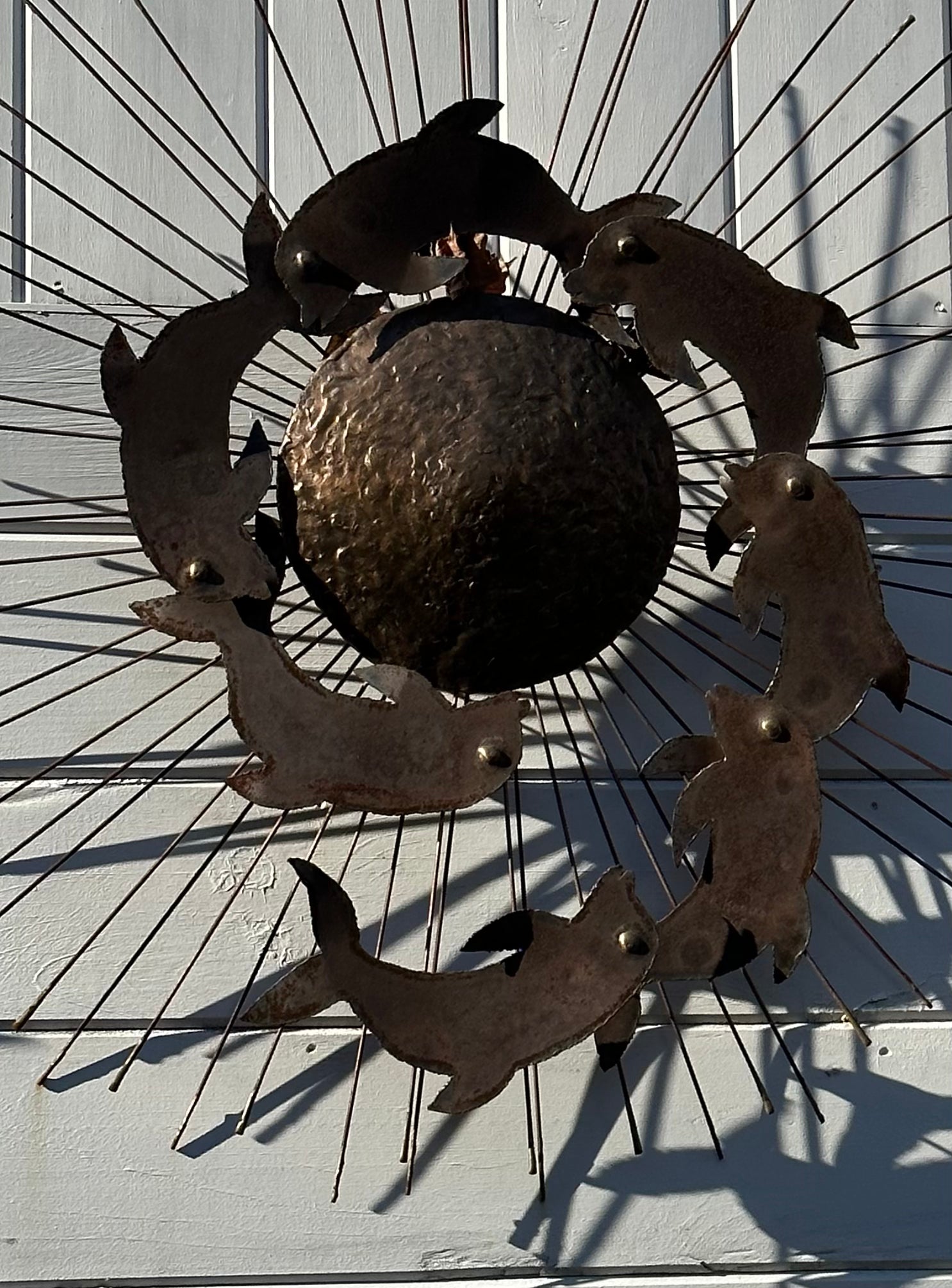 Take a good look at this handcrafted dolphin wall sculpture, because dolphins are considered good omens. They're known to rescue drowning sailors that have been swept away. If dolphins are not an animal you think about often, yet they're unexplainably on your mind, it may mean that good fortune is on its way. If you consider adding this beautiful dolphin wall sculpture to your collection, you'll really be in luck. Made to endure the elements and made out of steel, each element is lovingly hand crafted. It's a lovely and durable one-of-a-kind piece.