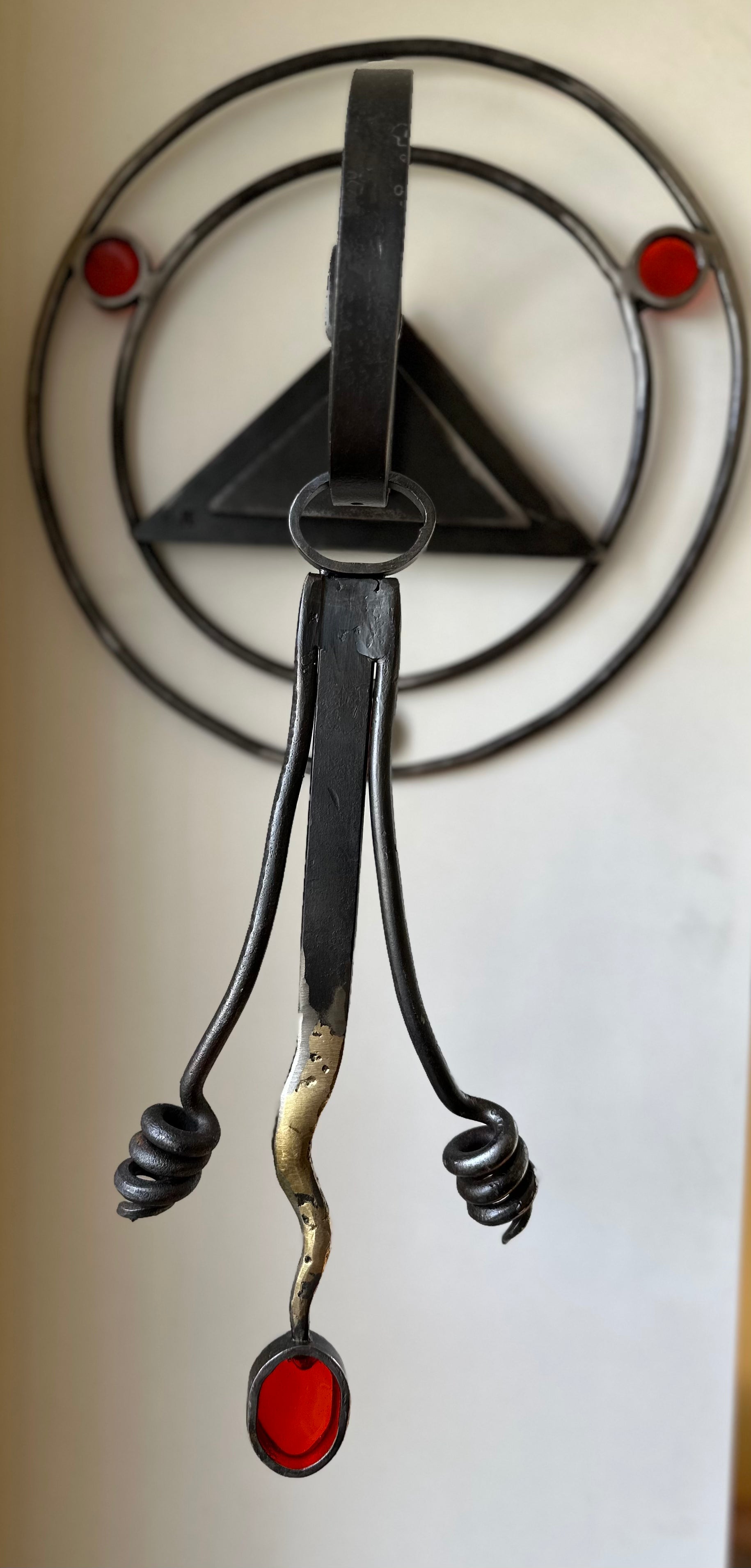 Balance is what life is all about, and this original, hand crafted and blacksmithed wall hanging is sure to add harmony to your home. Circle around and hear me out: This is no IKEA or Amazon cheap reproduction that can be ordered online; imagine trying to make a circle out of steel then aligning it with this perfect geometry of triangles and lines. The hanging tri-pendulum echoes the sun and marshland and energy is concentrated in a dual lineage of power. (Huh?) (Well it sounds good, right? And why not?!) Anyways, as they say in Medford, this striking indoor-outdoor masterpiece was forged with love and attention.